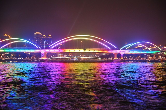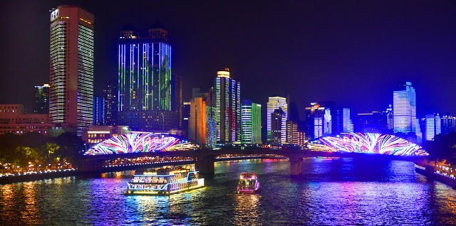 在珠江水上,勤劳的广州人民从20世纪20年代开始建设一座座跨江大桥,逐步将隔离于两岸的人民日常生活融为一体。