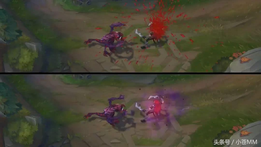若论游戏里面被和谐元素受重视程度最高的非血腥暴力莫属,而这个元素里面首当其冲的就是血液特效。血液特效的问题很容易让人产生误解,好多人都认为只要皮肤带有红色就有可能被和谐,实际并非如此。其实真正要禁的只有暴力血腥的部分,具体到游戏里面就是英雄或者皮肤中的红色溅血效果,而不是皮肤自己的红颜色效果。所以,大多数成为石油家族一员的英雄或者皮肤因为溅血效果过于明显,最为典型的就有诺手、吸血鬼和大虫子等英雄。