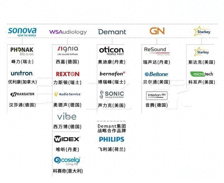 虽然助听器市场品牌众多,但以下几个品牌因其卓越的技术和广泛的市场认可度,被分成一线以及二线品牌。