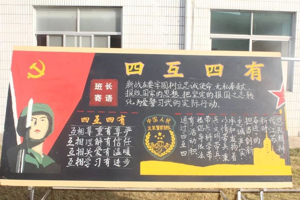 正所谓:四互四有孕育和谐美,同心同德走好军旅路,军营是一个和谐的大家庭,战士们在这里一起学习,一起进步。