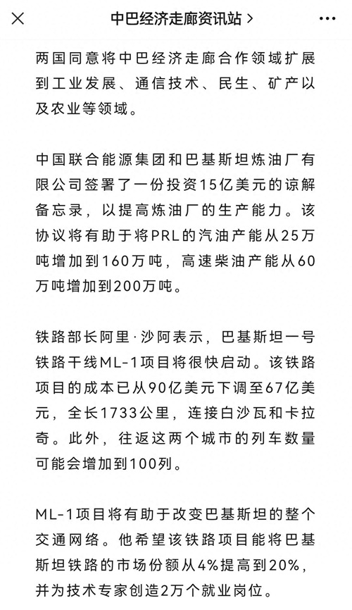 中巴铁路降价240亿!双方达成共识,即将启动实施!