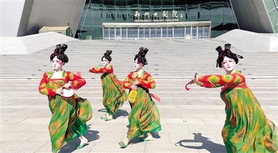 初春时节,万物复苏,古都郑州一派生机勃勃。上周日,《唐宫夜宴》的“小姐姐”们身着舞台上的锦衣华服,化着“斜红”妆容出现在郑州东站、郑州大剧院、奥体中心、如意湖畔、黄河文化公园临河广场、炎黄广场等郑州地标处。她们俏皮地舞动着曼妙的舞蹈,再次向市民展现了“鬓云欲度香腮雪,衣香袂影是盛唐”的别样风姿。不少市民发现,“霸屏”多日的“唐宫小姐姐”们竟然真实地走进都市生活,感到特别惊喜。大家纷纷停下脚步,认真欣赏舞蹈。