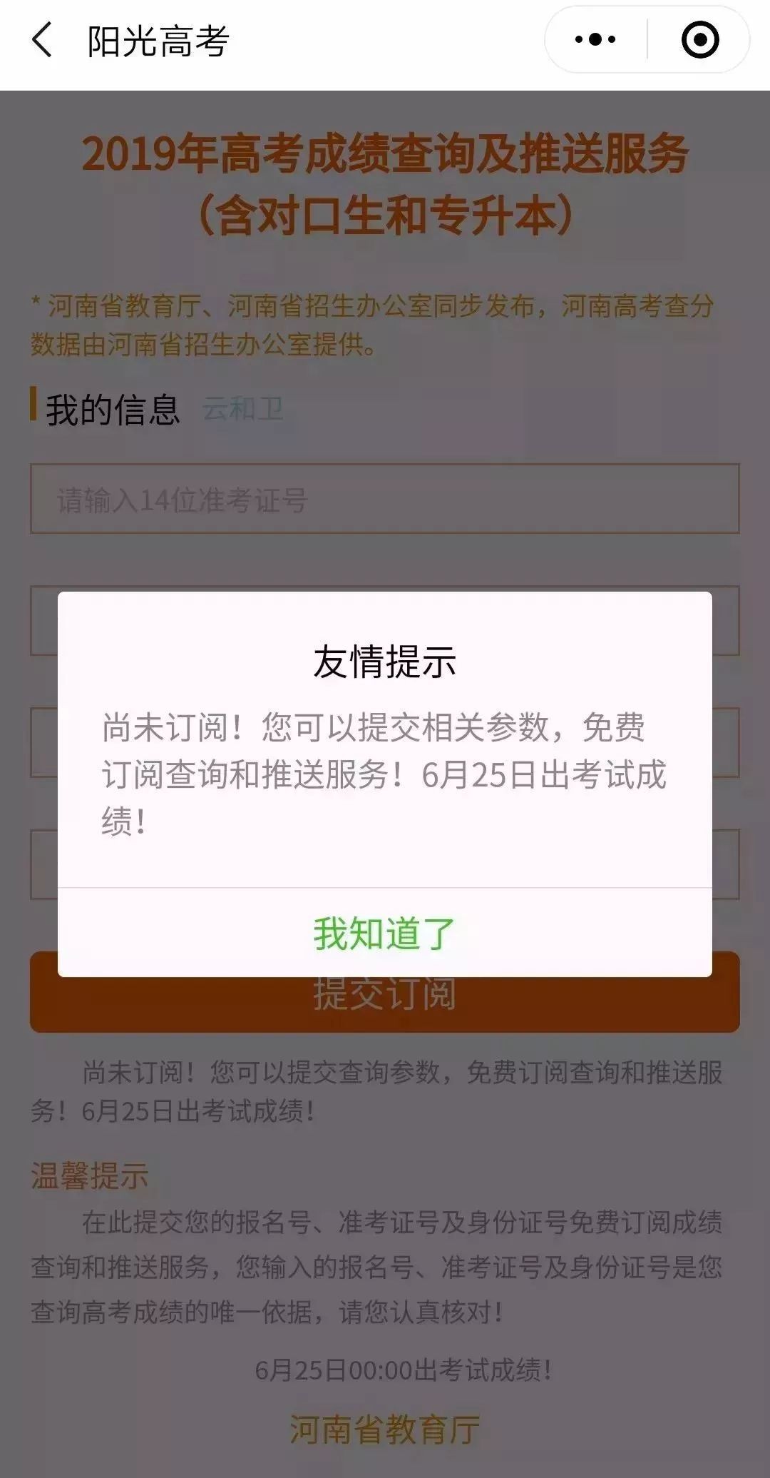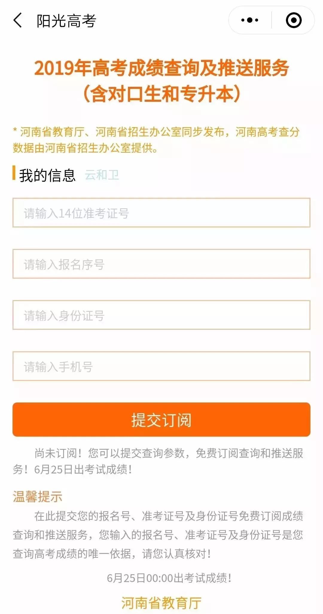 河南省2019高考服务小程序