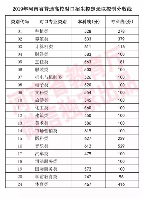 2019河南高招录取控制分数线