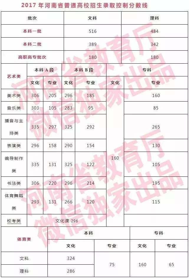 2017河南高招录取分数线