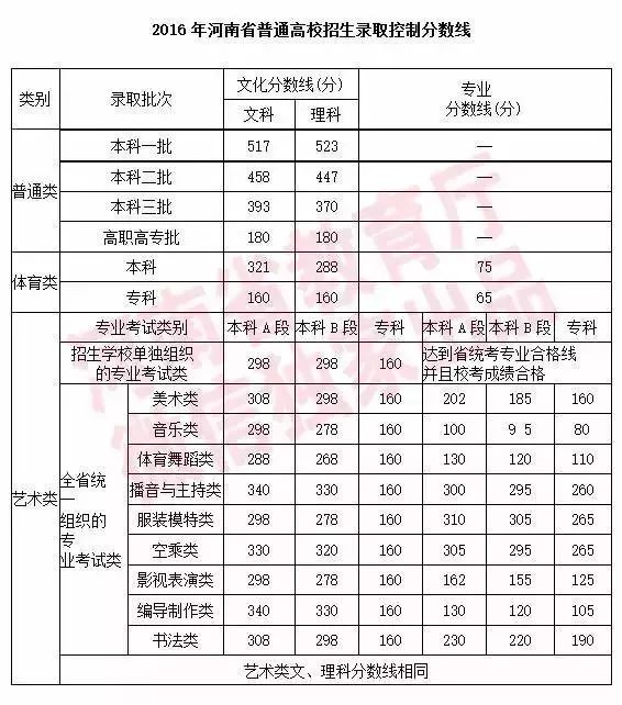 2016河南高招录取分数线