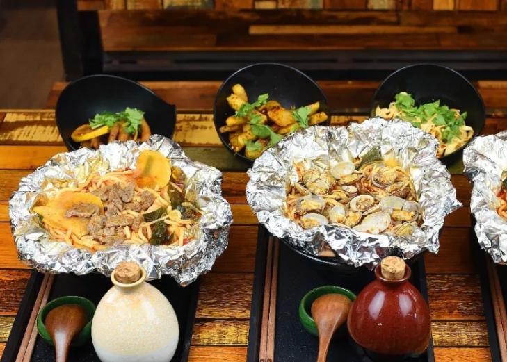 包烧之所以入味、好吃在于其制作方式,决定了味道的独特,选择不同的食材与米线搭配用锡纸包住米线直接加热,对于米线而言,就像完整的做了一次桑拿。