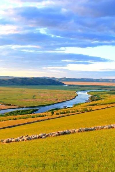 它的蜿蜒流向,使这片偌大的草原多了几分灵动与柔美,沿河两岸绿草犹如地毯。而其中的诺干湖被称为“翠绿湖泊”,清澈的湖水倒映着蓝天白云和草原的翠绿,犹如一幅美丽的画卷。