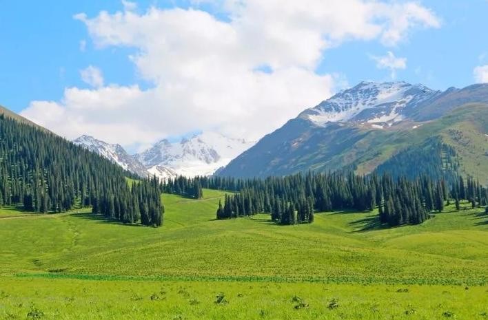 喀拉峻草原将雪峰、冰川、瀑布等自然景观汇集于一身,展现出雪峰于山谷的交相辉映、瀑布于草原的融合之美。草原、河流、森林等美景来回切换,每一种景色都是一次视觉的享受。因此,被称作为“中国最美的立体草原”。