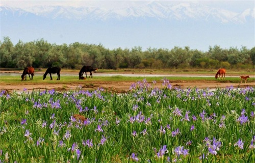 昭苏草原则是被人们称为“中国天马之乡”。这里,水草丰茂、背靠雪山,优质的自然环境可以给当地的马儿提供优渥的生存条件,享受策马奔腾的美景。
