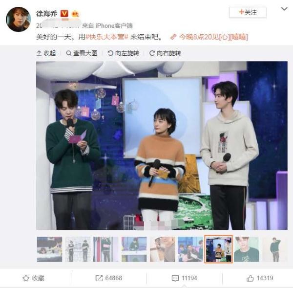 之前徐海乔上《快本的时候》就发过一篇微博,还有和吴昕同框照。