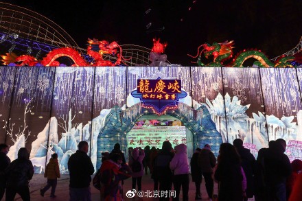 2022年1月15日晚,“2022年北京龙庆峡冰灯冰雪季”在北京延庆区龙庆峡文化广场开幕。本届冰灯冰雪季以“与冬奥同时,与中国同步”为主题,并且加大冬奥文化创作力度。