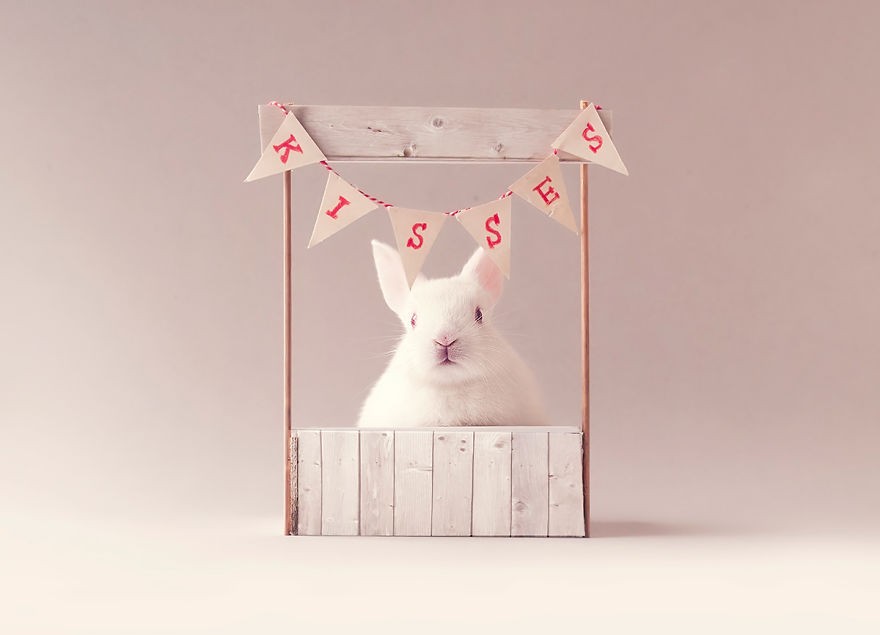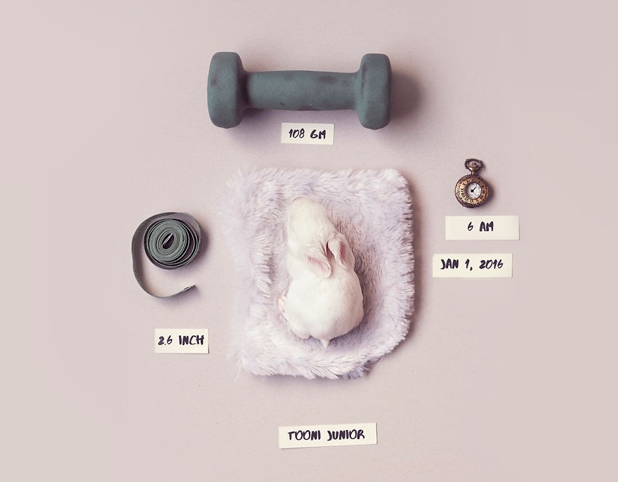 “我有两个宠物兔子,我已经拍照。它们不仅是可爱的同伴,而且也有非常有趣的照片。我见过一些惊人的新生儿和想尝试这样的照片。所以今年当兔子Tooni有另一个孩子的时候,我认为这将是有趣新生儿开始庆祝新的生活的方式”。