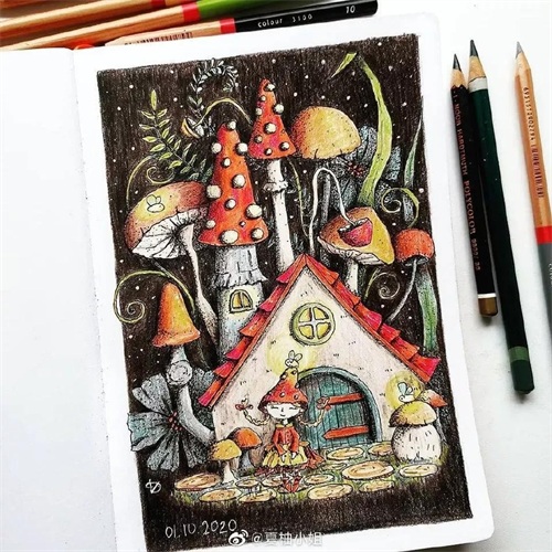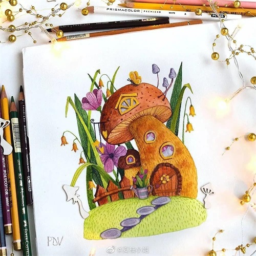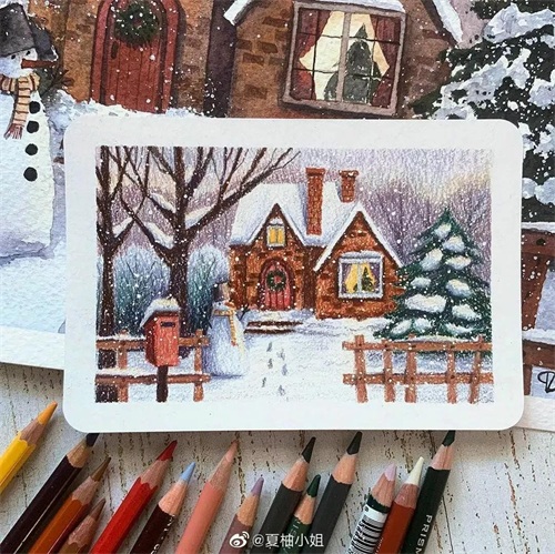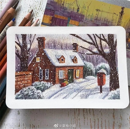 彩铅绘画素材分享—19幅房子彩铅作品,喜欢记得收藏哦