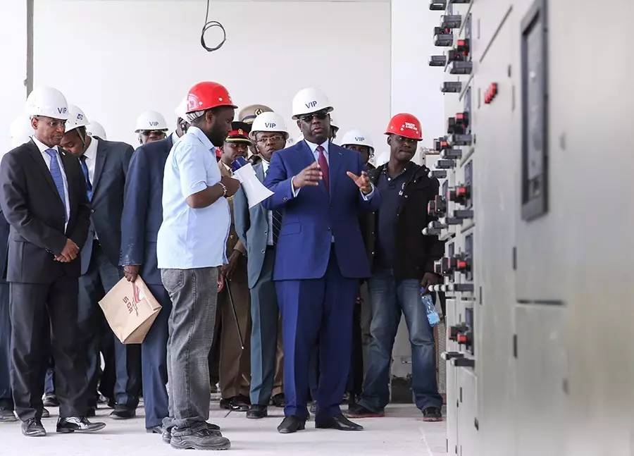 2016年8月29日,塞内加尔总统萨勒(右二)到访中国在肯尼亚修建的蒙内铁路工程现场,了解铁路进展情况,称赞中国在非洲修筑铁路推动了非洲经济发展。新华社记者潘思危摄
