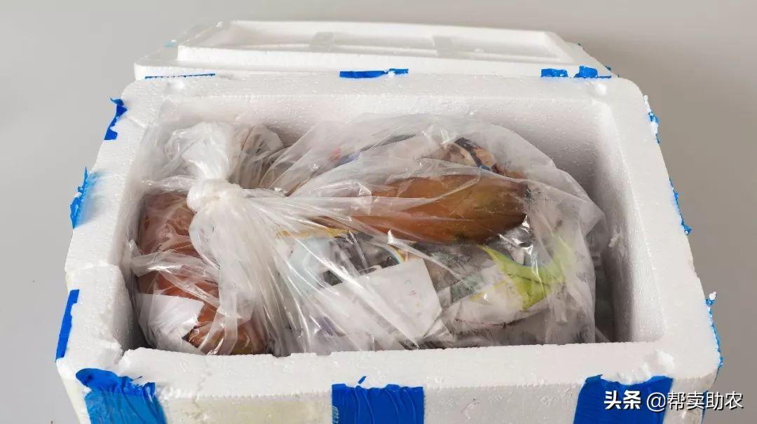 发货的包装我们用了可以保温的泡沫箱,香蕉用保鲜袋装起来,里面用报纸分隔开,以吸收香蕉闷出来的水汽。