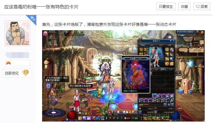 玩了11年DNF,见过蓝卡、粉卡、传说卡,但你是否见过“绝版闪卡”呢?有玩家晒出两张与众不同的卡片,自称全服只剩最后两张,虽然属性不强,但自带闪光效果。此事一出立马吸引了大批土豪,虽然大家都是老玩家,但平时玩游戏真没注意这些卡片还有这样的效果,于是纷纷出价竞争购买!