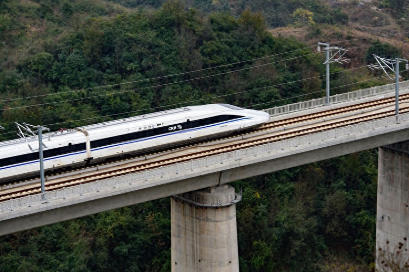 这条高铁线路最高设计时速为300km/h,全长857公里。其中,桥隧路段约660公里,桥梁路段约为210公里,隧道路段约为456公里。