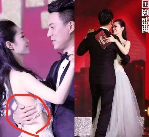 还有今年的国剧盛典,靳东和另一位女星跳舞,从现场画面可以明显看出,他的手指已经戳到了女星礼服的带子里。