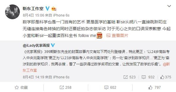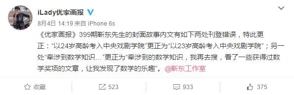 之后的优家画报更正声明,也是看着各种怪异,完全没有起到挽回形象的效果,字里行间都透露着靳东团队的公关痕迹。
