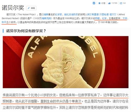 尴尬之感扑面而来……诺贝尔什么时候设过数学奖?!而且他老人家最讨厌的就是数学家。