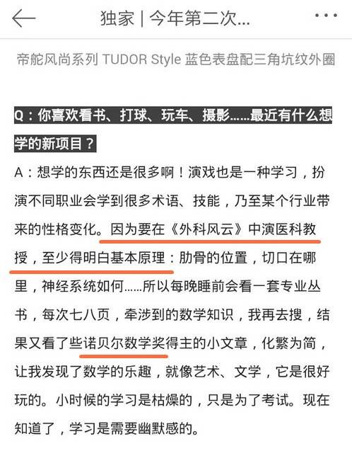 事件过程是这样:在最近的《优家画报》采访中,靳东宣称他为了熟悉医学知识,特地去找诺贝尔数学奖的文章看。