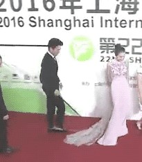 今年的上海国际电影电视节红毯上,靳东似乎是嫌走在他前面的女星裙摆碍事,拿起拐杖去戳女星礼服,而且都快戳到屁股了。