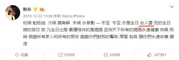 他去年发的生日微博,也被网友指出用语错误。