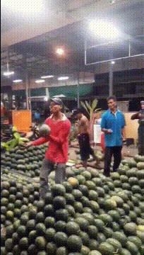 我勒个去~这样的干活方式可真是充满了魔性啊~真的没想到运西瓜还能有这样的运输方式?真的非常具有观赏性啊......