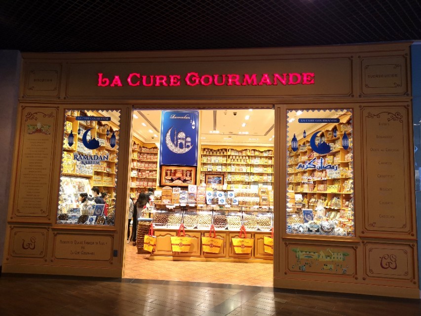 【迪拜购物中心】也是必去打卡的地方,这里豪华大气、雍容华贵,是中东最大商贸中心。著名的哈利法塔就在这里,中国游客到这里以观光为主。在商场地下一层有两个网红店:一个是法国巴古尔美食家Ba gure gourmande在迪拜唯一的糖果点心专卖店,里面6迪娜姆一块各种口味的棒棒糖备受垂青;还有一家叫麦丽素的巧克力豆也分外抢手。黎巴嫩的纯植物帕吃patchi巧克力被誉为"巧克力中的爱马仕",也是各国游客争相购买的佳品。游客也可以在机场里面购买,部分款式会有折扣。