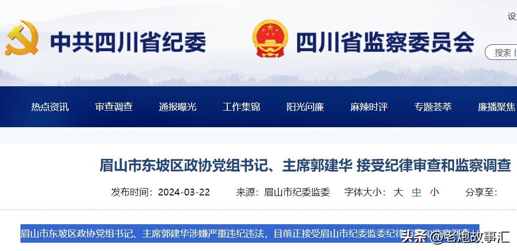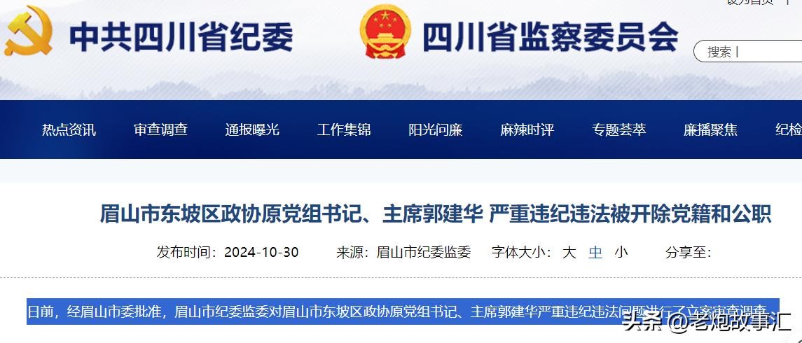 四川眉山市东坡区原政协主席郭建华被双开,严重违纪违法立案审查