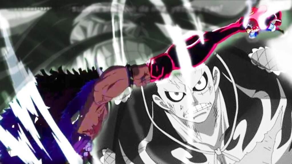 4档则是往肌肉里吹气,加上武装色霸气的护体让橡胶的张力变得十分大,这就让速度和力量都瞬间增大。简单来说4档其实是2档和3档的综合,但区别在于吹气不在骨头而在肌肉上,所以体型上并没有发生太大的变化。