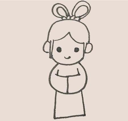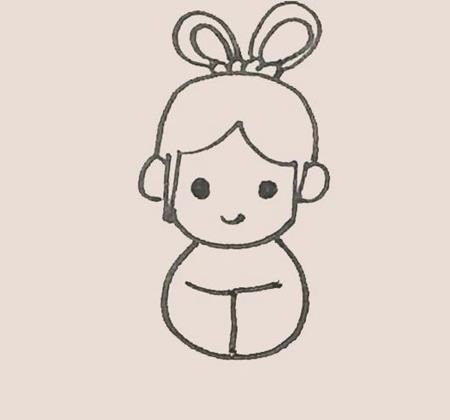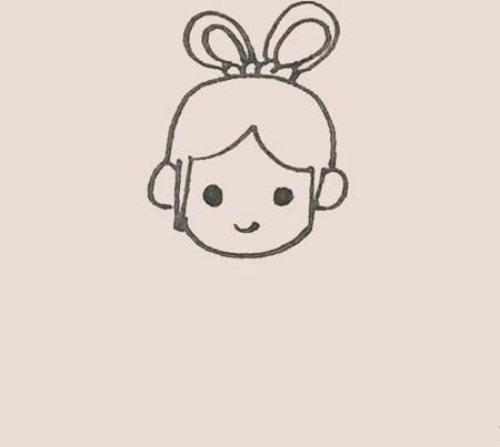 接着我们在小饰品上面画出两个双层的椭圆形发髻,然后在脸蛋上画出圆圆的眼睛和微笑的嘴巴。