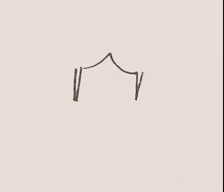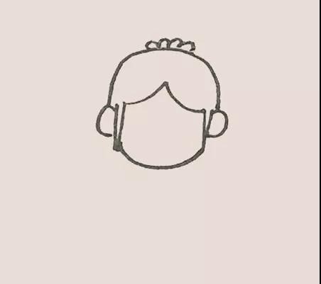 接着我们用三条半圆形弧线分别画出耳朵和脸蛋。最后再用半圆形画出脑袋,并在上面画上一点小饰品。如图