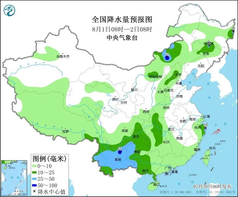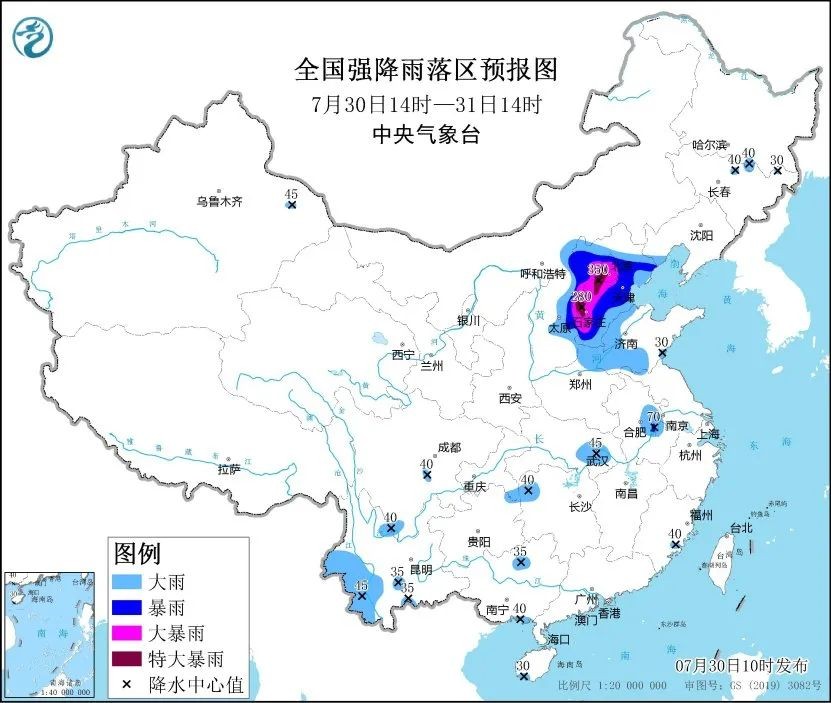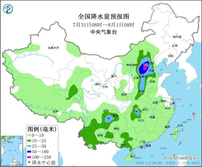 根据中央气象台预报,7月30日14时至31日14时,河北大部、北京、天津、山西中东部、河南北部、山东西部等地有大到暴雨。