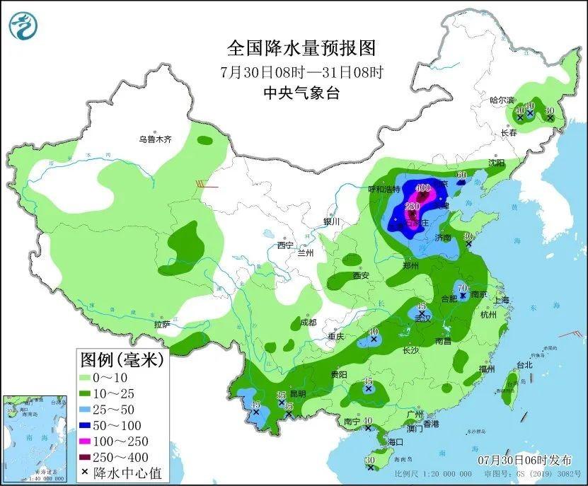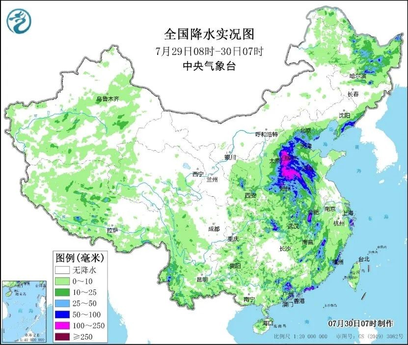 7月29日以来,河北中南部和东部、北京中南部、天津、山西东部、河南中北部、山东中西部等地出现了大到暴雨,河北中南部、河南北部、山西东部、山东西部等地部分地区大暴雨,河北中南部沿山地区、河南西北部等地部分地区特大暴雨(250到540毫米),大部地区最大小时雨强20到40毫米,局地超过80毫米。