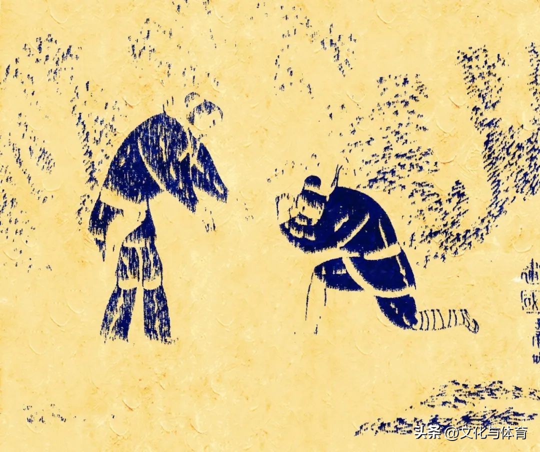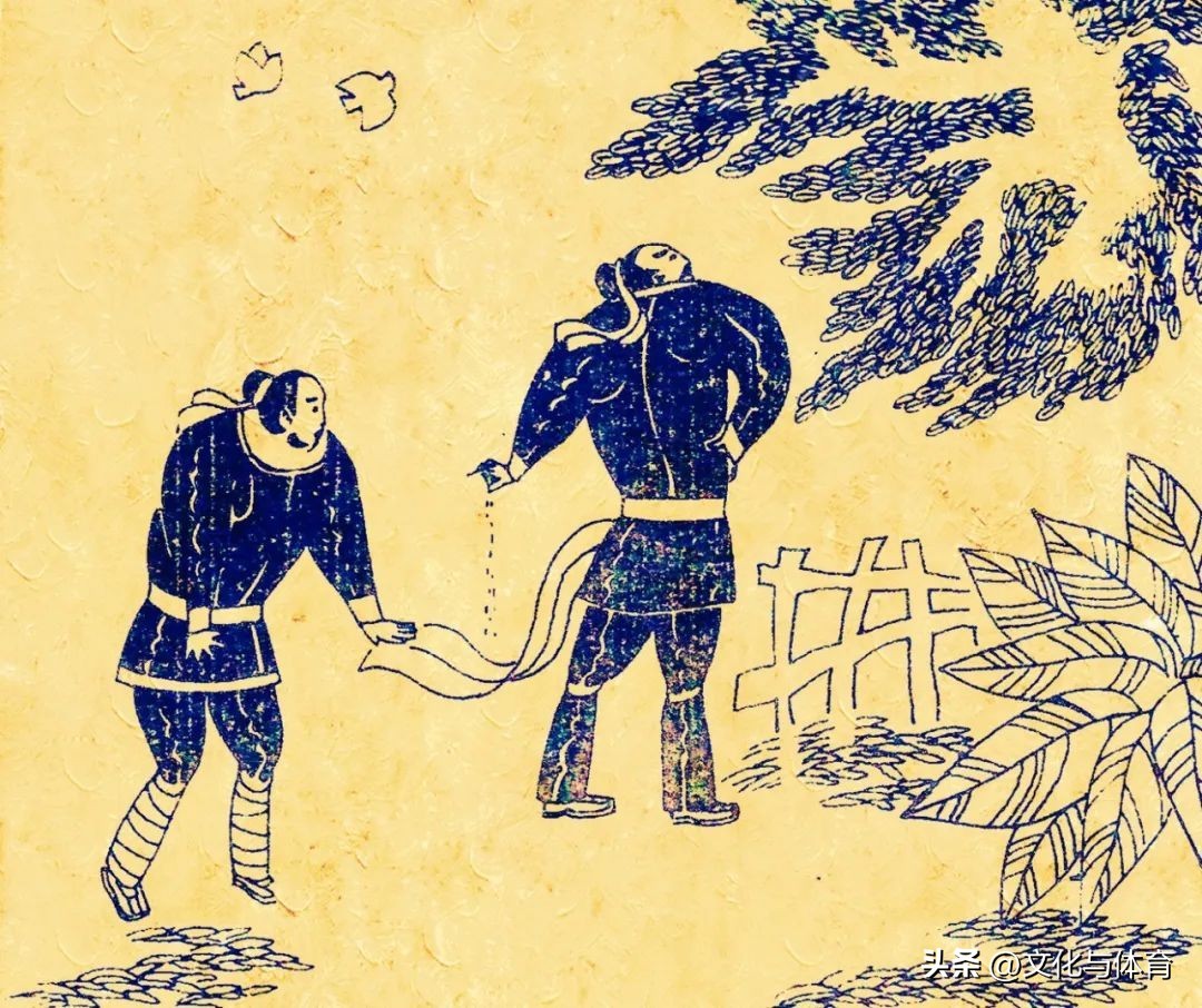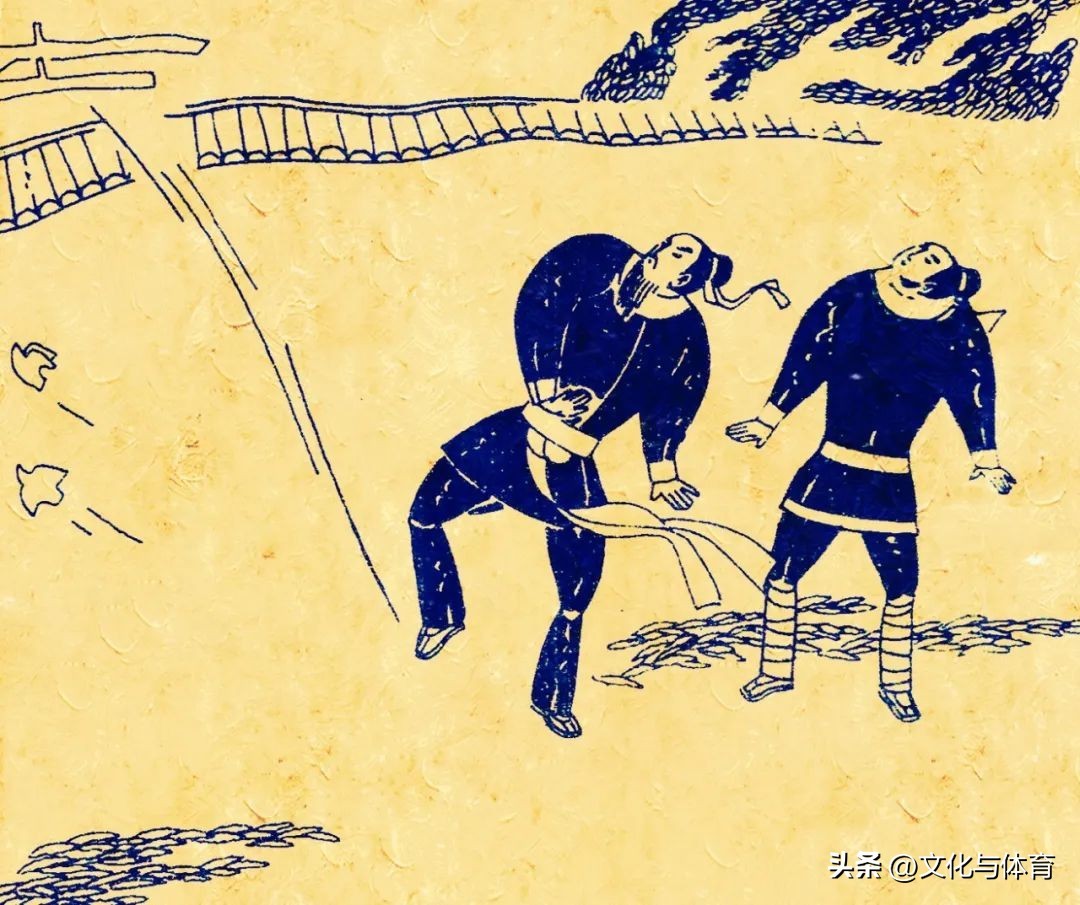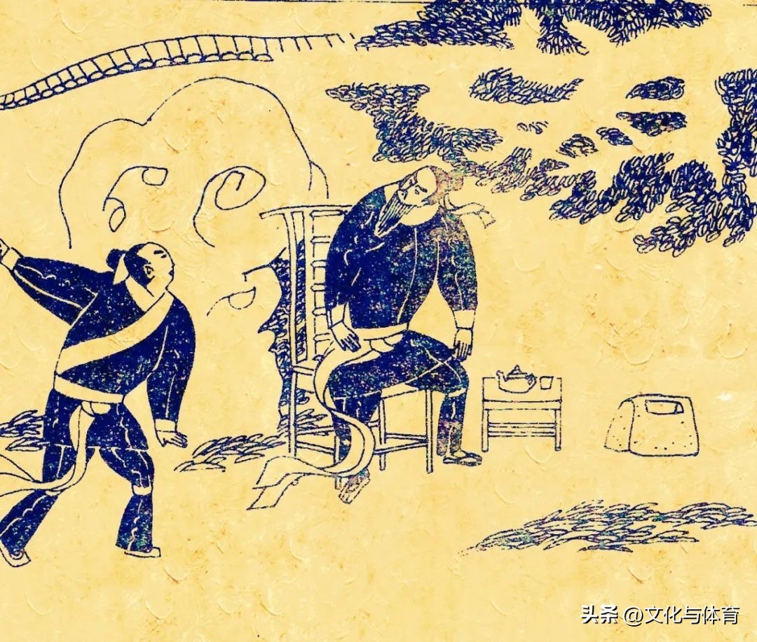 杨班侯飘身下桩,对大汉说:“切磋拳艺,精益求精是咱们武林的传统,为把武术精艺传流下去,我欲传你武技。不知……”黑大汉一听,倒头便拜,连称杨班侯“师傅”。(小橙改编 建国绘画)