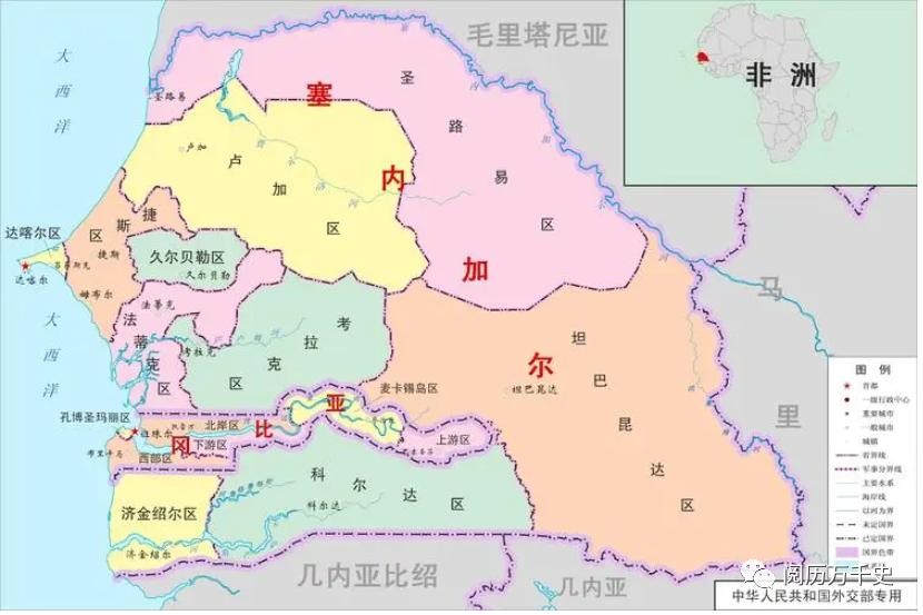 冈比亚,全称冈比亚共和国。它位于非洲西部大西洋沿岸。冈比亚属热带草原气候,全年分雨季(5月至10月)和旱季(11月至次年4月)。西邻大西洋,北、东、南三面被塞内加尔紧紧包围。国土面积1.12万平方公里。全国分为首都班珠尔市和5个地方行政区。截止2020年人口为240万。主要民族有曼丁哥族、富拉族、沃洛夫族、朱拉族和塞拉胡里族等。官方语言英语,主要宗教为伊斯兰教。