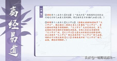奶秀:王母流整体削弱,雾雨持续时间降低。王母技能本身+20%治疗量;技能本身在血量低于50%的时候额外15%治疗量;红隙是45%但是有技能自带的15% 。