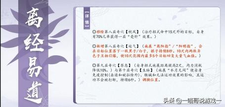 奶花:PVP——目前的常用奇穴看来是生脉和流溢可以同时点出来,下棋的改动也可以尝试。第八层奇穴以后是生脉金针寒清知寒里面选,但是似乎和原来的双水月知寒有所冲突。总的来说算是好事,至少遇到某些内功配置没这么痛苦了。