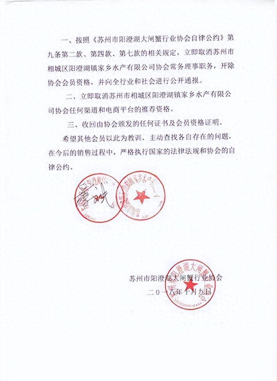 相城区阳澄湖镇范记蟹业经营部则因买卖阳澄湖大闸蟹防伪标志(蟹扣)及发布虚假发货信息被罚款5万元。