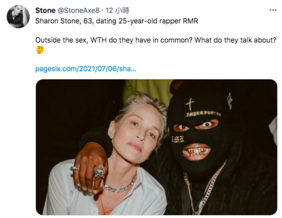 莎朗史东与25岁饶舌歌手传出绯闻。(图/翻摄自Twitter)