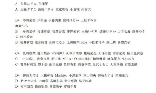 评价过低的:MAO、津田美波、沼仓爱美、山崎遥、藤井雪代