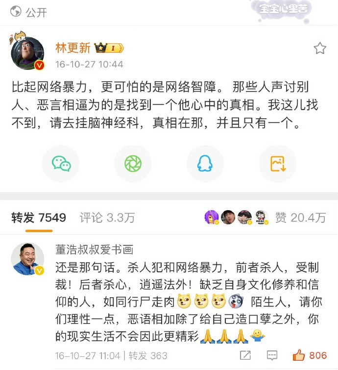 林更新的举动,或许是对自身的一种保护,也是对这场网络暴力的无声抗议。