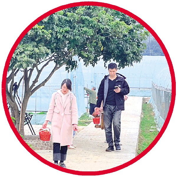 在这里,能体验到公园式的采摘乐趣,平整的石砖路通往各处,园内还有休息的长椅,以及凉亭、木质吊桥等,给采摘的游客提供充足的休闲区域。周林付说,草莓产业园在建设过程中,积极发展城郊型休闲观光体验农业,在基地中利用荒地、林地打造观景,设置烧烤区和亲子农场,为游客打造可赏、可玩、可休闲的农旅融合网红打卡点。同时,他们还在全市率先探索立体架式栽培技术种草莓,能给游客提供多样的采摘体验。