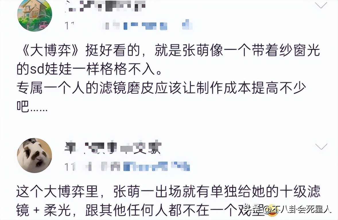 实话实说,张萌单独开滤镜,五官都看不清了,不仅失真,也没有美感,看久了挺折磨观众眼睛的,很多观众都在反应这个问题。