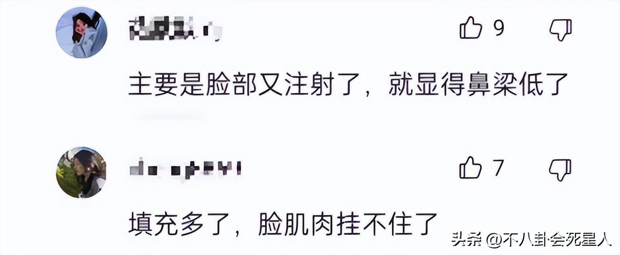 对此,不少网友都在怀疑,她是在脸部作了注射,才导致脸上肌肉挂不住。