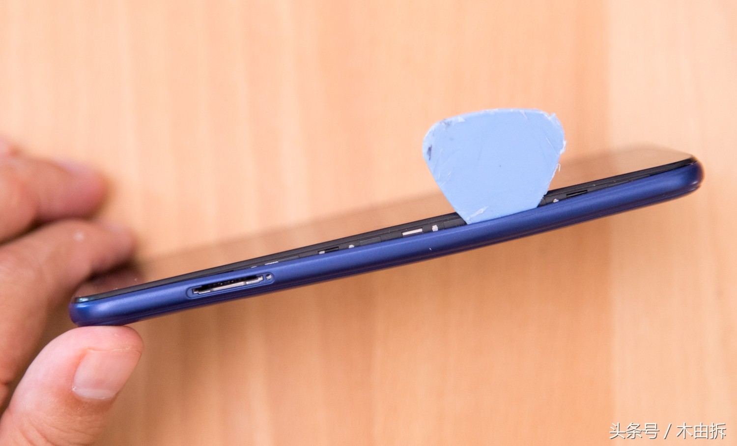 荣耀畅玩7手机跟7C还不完全一样,机身侧面没有一颗螺丝,后盖和机身没有胶水连接,纯靠卡笋相连。要拆开荣耀畅玩7手机,用塑料片将侧面卡笋逐渐撬开即可将后盖取下。
