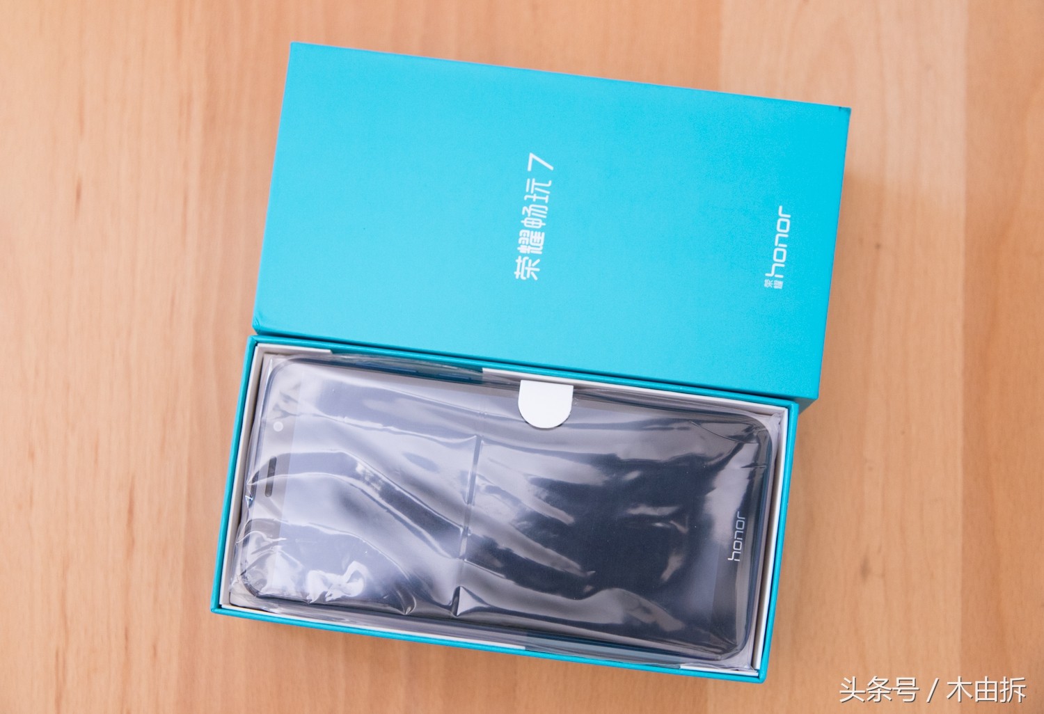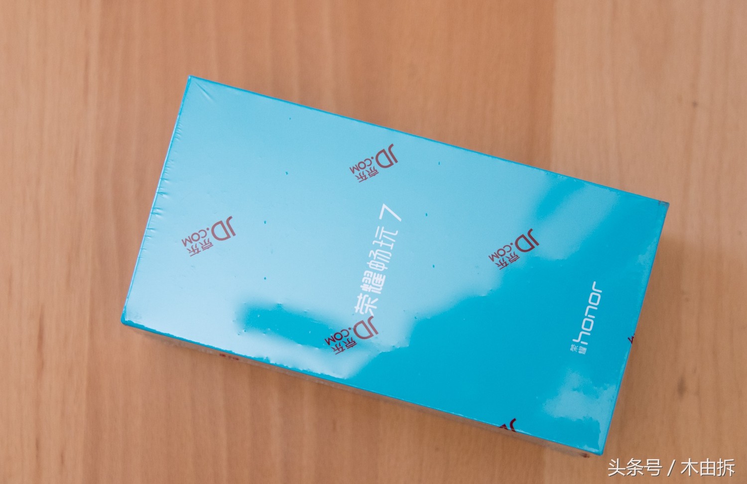 荣耀畅玩7手机是京东零售版,外包装跟我们之前拆的荣耀7C非常类似。