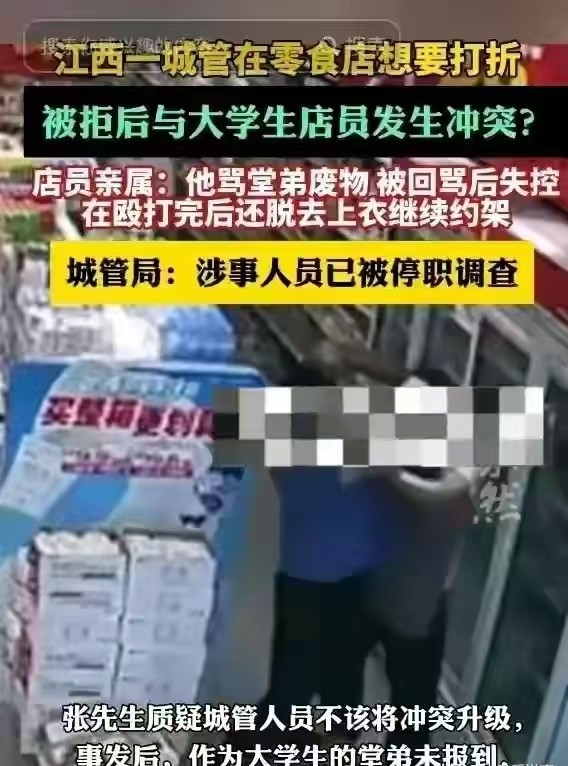 城管殴打大学生店员后续,涉事城管被停职,官方回应引争议